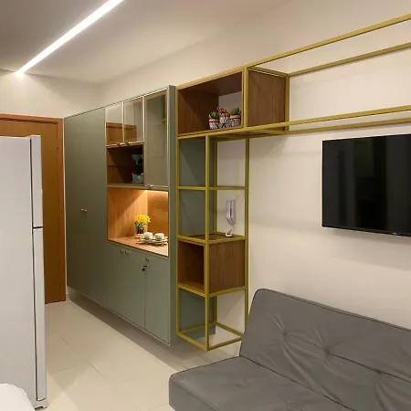Das 29 m^2 große Studio Mana Beach Muro Alto 200 Metros Da Praia im Stadtteil Praia Muro Alto von Pôrto das Galinhas verfügt über eine Terrasse mit einem Swimmingpool sowie einen Blick auf den Pool. Praia de Muro Alto ist in etwa 25 Gehminuten Entfernung von dem 1-Zimmer-Apartment.